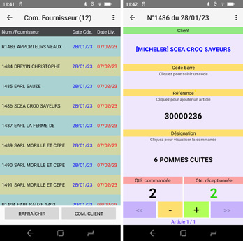 Lors de la connexion au serveur, choix de la commande client à préparer ou de la commande fournisseur à réceptionner.