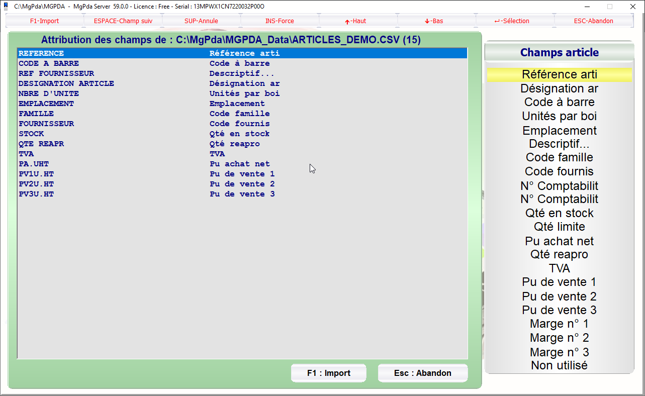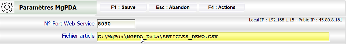 - MgPda Serveur mettra automatiquement à jour la base article, par la simple détection de changement du fichier Excel ou CSV