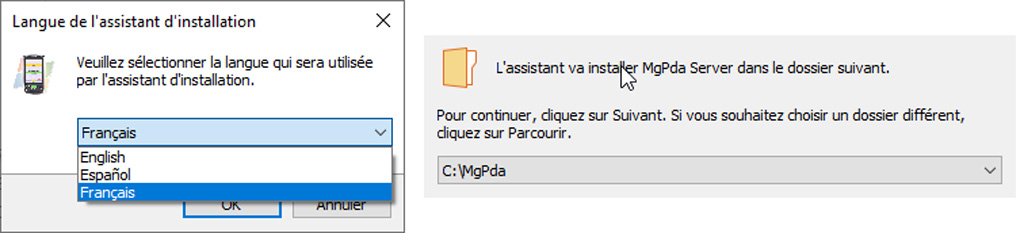 - Par défaut, un dossier « MgPda Export » ainsi qu’un raccourci sur le bureau sont créés lors de l’installation