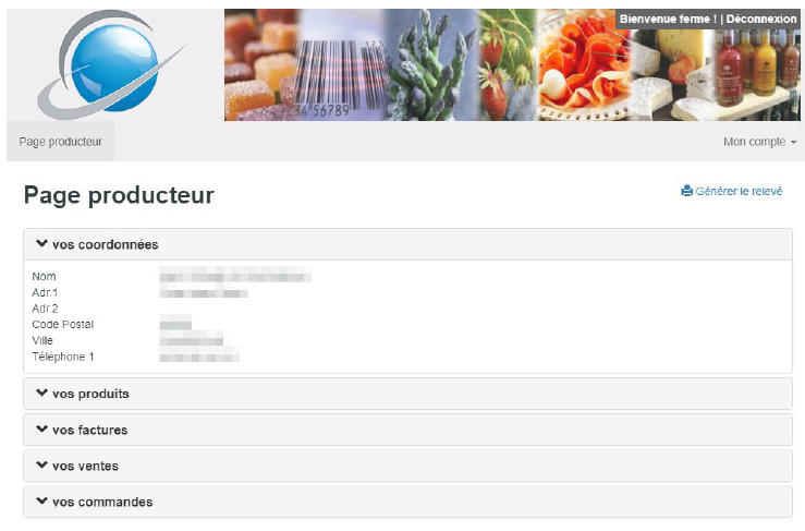 Pour une interaction totale avec le magasin, certains producteurs peuvent également avoir un accès à distance intégral à Micro Gestion afin d'éditer les statistiques souhaitées, actualiser la base article... Les factures de commissions ou de prestations, téléchargeables sur un an